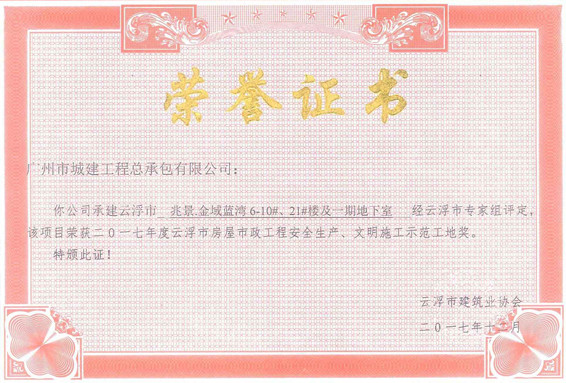 2018年1月,公司金域藍灣項目喜獲2017年度云浮市房屋市政工程安全生產、文明施工示范工地獎。自金域藍灣項目開工以來,公司一直不斷加強安全文明管理力度,并成立了專門的督導組,從技術、現場、協調、...
