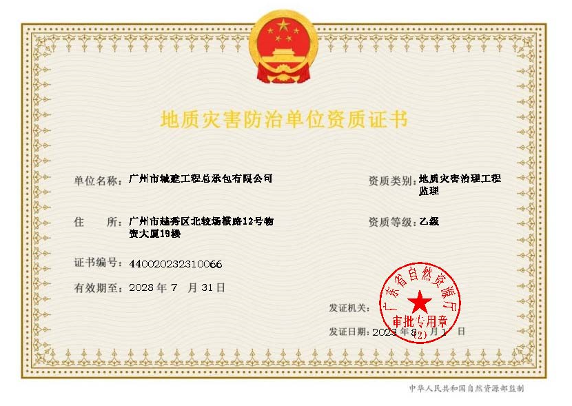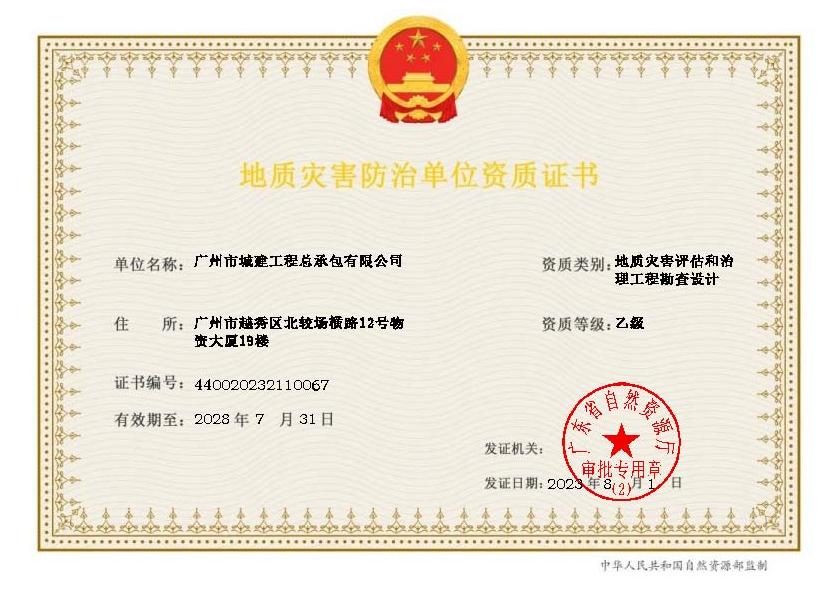 地質災害評估和治理工程勘查設計乙級