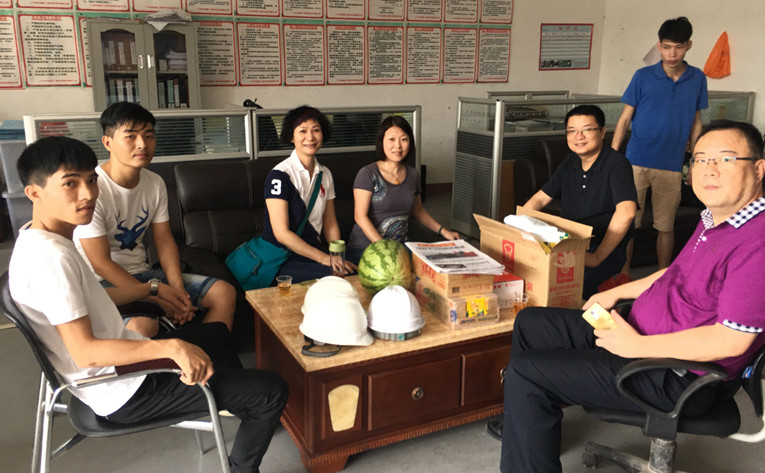 2017年6月、7月,公司領(lǐng)導(dǎo)班子及工會全體成員分別到廣州二沙島文化娛樂中心、增城掛綠新城、梅州嘉應(yīng)醫(yī)院住院大樓、廣州宇蒙實(shí)業(yè)有限公司廠房、番禺洲山大廈、云浮市糧油儲備直屬庫工程項(xiàng)目部,親切走訪慰問看望工程一線生產(chǎn)管理人員,并為他們送去防暑降溫藥品、清涼飲料。